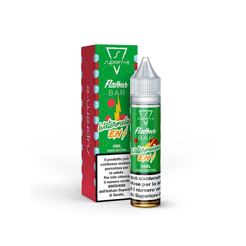 Suprem-e Flavour Bar Watermelon Energy è un liquido eLiquid shortfill da 10 ml in una bottiglia da 20 ml – 0 mg/ml. Al gusto Ghiacciato di Bevanda energetica con Anguria.