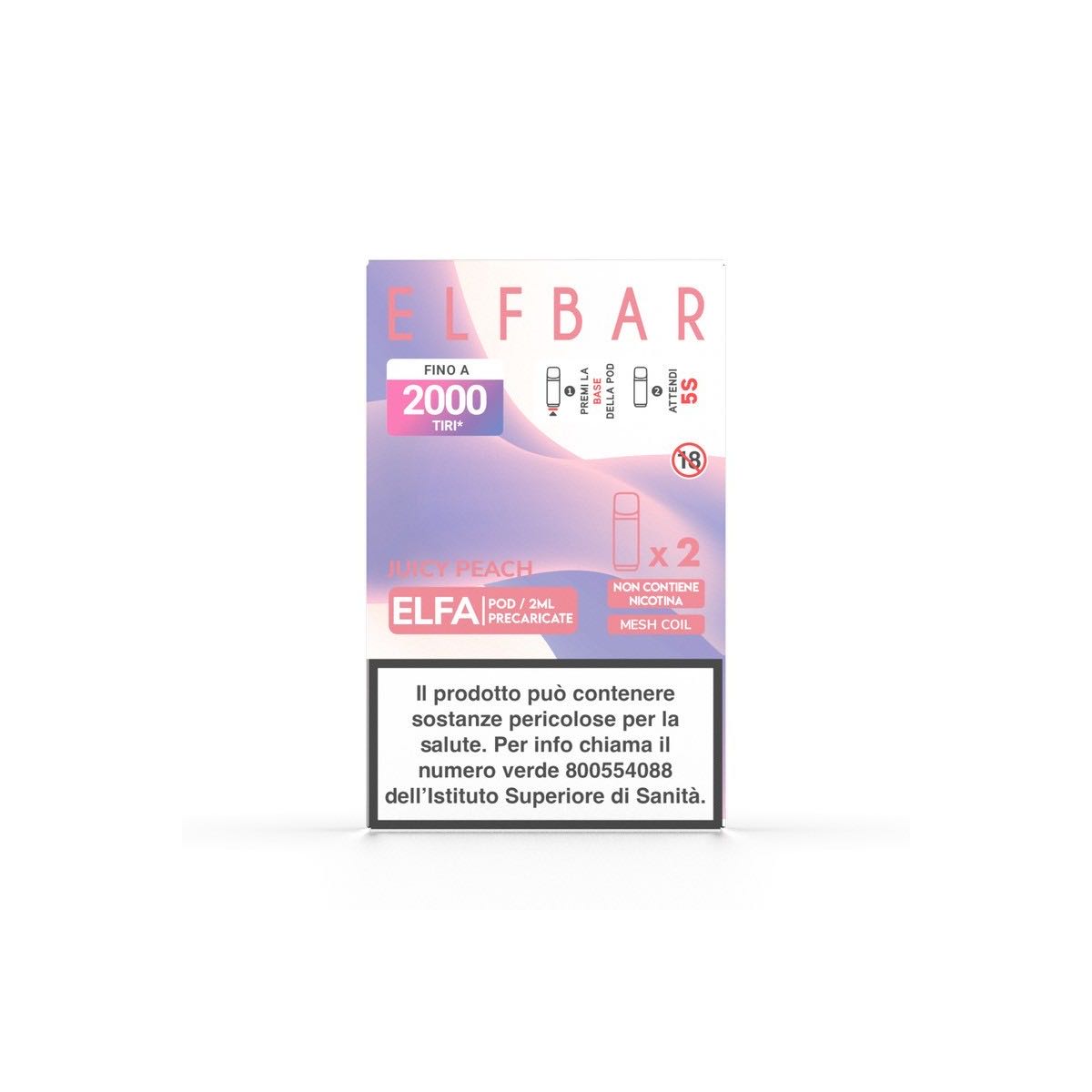 ELFBAR ELFA 2ML PREFILLED POD JUICY PEACH (2 PEZZI) – 0 MG/ML AL GUSTO DI SUCCO ALLA PESCA.